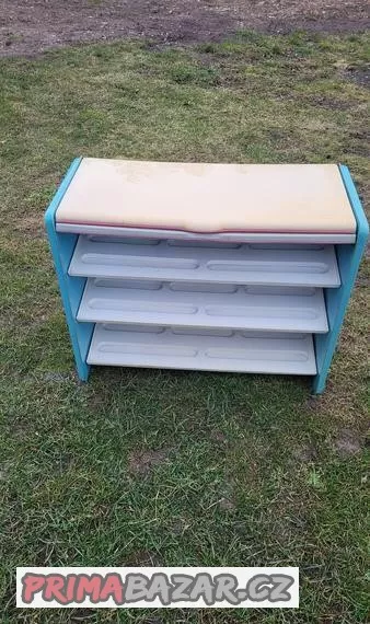 Prodám retro plastový botník. Navrchu odklopné víko s prostory na kartáče a krémy. Stav zachovalý