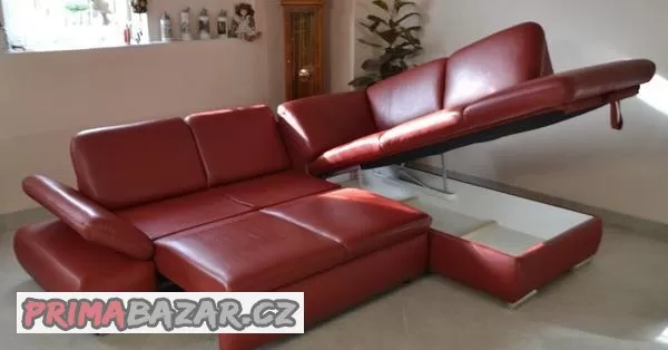 Rohová, kožená, rozkládací sedací souprava. TOP