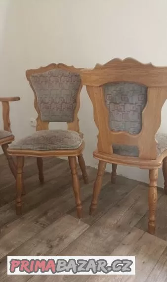 Prodám vyřezávanou rohovou lavici s úložným prostorem se třemi židlemi.