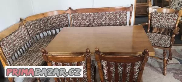 Rohová lavice + 3x židle + rozklád.stůl