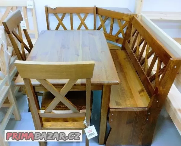 Rohová lavice s úložným prostorem materiál borovice odstín dub , univerzální 110x150cm 089- 7.290Kč
