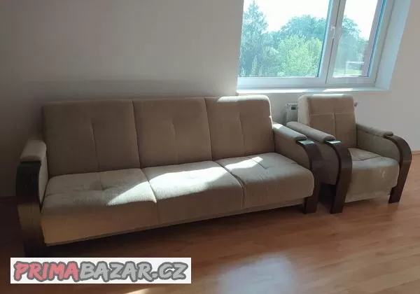 Prodám kliklak gauč, rozměry 225cm x 100cm(hloubka) x 90cm(výška). Na ležení 200cm x 120cm. Křeslo 82cm x 93cm(hloubka) x 90(výška). Pouze osobní odběr. 800Kč sedačka, 300Kč křeslo, obojí dohromady 1000Kč