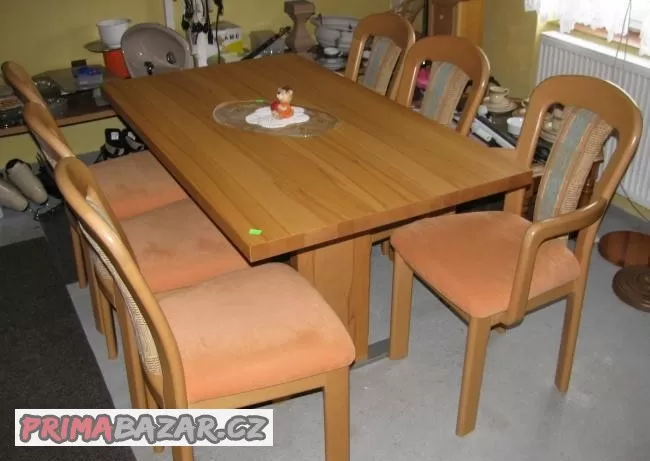 Rozkládací jídelní stůl + 6 židlí