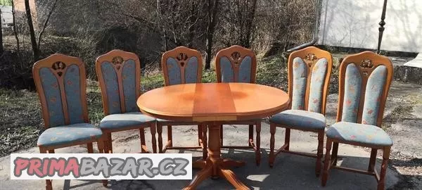 Rozkládací kulatý stůl + 6x židle