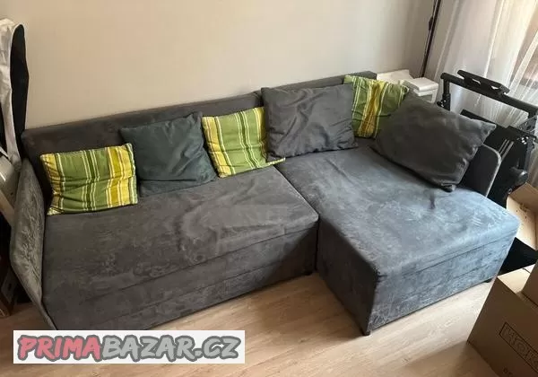 Prodám rozkládací pohovku s úložným prostorem včetně polštářů na fotce. Používaná. Nedávno byla kompletně vytepovaná.