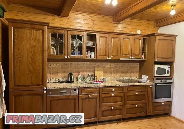 Prodám rustikální kuchyňskou linku, užívanou 10 let na chalupě. Cena včetně spotřebičů Simens.