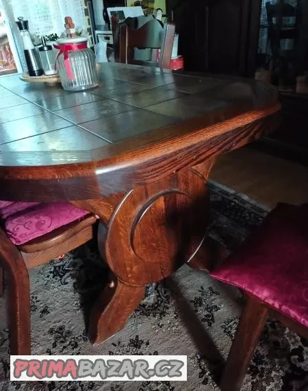Prodám jídelní stůl vel.170cm x 80 cm,zkosené rohy, deska kachle,možné přiložit až 8 židli ke stolu.4 nebo za příplatek 6 židli,stěna 2,80 m, stylový lustr . Mohu poslat více fotografii na email.Cena 36000 Kč.Ve velmi pěkném stavu.Duvod,prodeje stěhování.