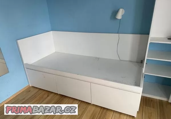 Na miru delany nabytek postel s uloženým prostorem 3 hluboké supliky a skrin s knihovnou a skříňkou na zavření. Bila barva, bezvadny stav.