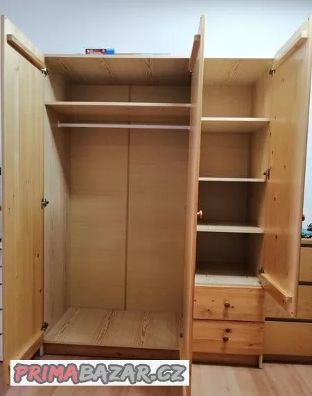 Šatni skřín 135×53×180 z IDEA nabytku, předni dvere masiv borovice , korpus dřevotříska (Skříň 898 lakovaná - IDEA Nábytek (idea-nabytek.cz))