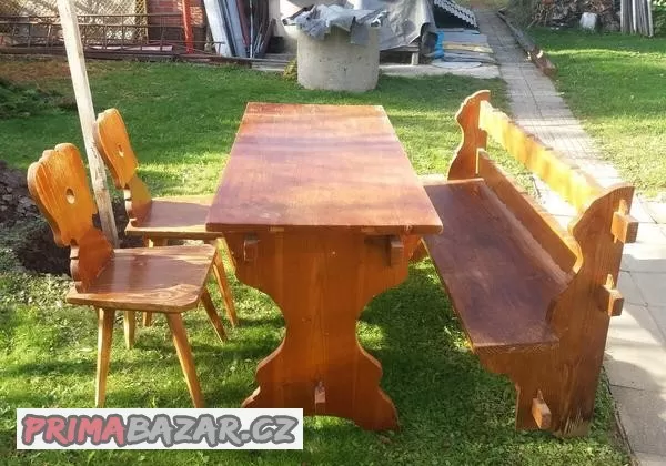 selský stůl,lavice + dvě židle