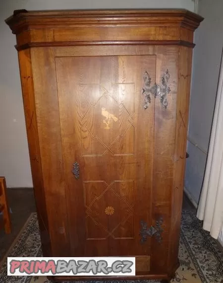 Prodám skříň, inkrustovaná, čistý sloh. Vkládání dřeva do masivu, dub masiv, 1 šuplík v dolní části,