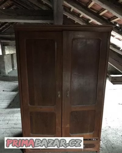 Prodám velice starou skříň, oblíbený design se šuplíkem dole. Je zašpiněná, ale jinak velmi dobře zachovalá, skladovaná v suchu. Vyrobená z masivního smrku, povrch je z dubové dýhy. Téměř jistě je vyrobena před rokem 1920. Pouze osobní odběr v Králově Poli.