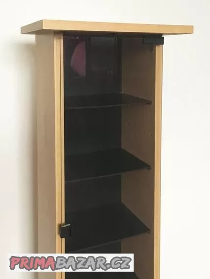 Prodám skříňku např. na CD (nejen), velmi pěkný stav, skleněné dveře. Rozměry: šířka-27 cm, výška-89 cm, hloubka-20 cm. Pouze osobní odběr Praha.