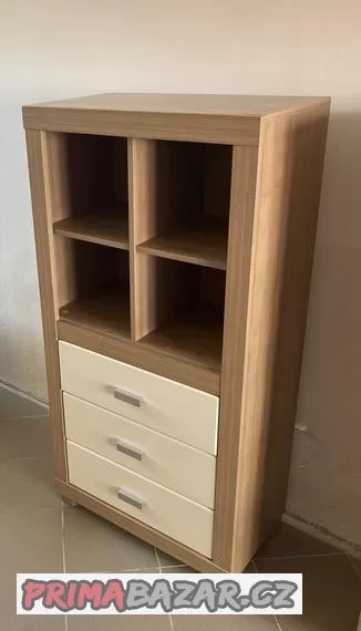 Komoda, skříňka se zásuvkami. ˇ4ela zásuvek jsou lesklá, skříňka je nepoškozená, stav velmi dobrý.