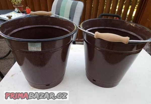 Nabízím smaltované nádoby, mísy objem cca 5-10litrů, kyblíky 10litrů, hnědé, bílé. Nepožkozené, nepoužité. Kontakt do meilu.