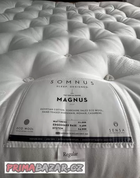 Nabízím vysoce kvalitní, ručně vyrobenou matraci firmy Somnus. Původní cena velmi vysoká. Důvod prodeje-stěhování. Rozměry 200x200, výška 25-30cm. Rok výroby 2021 Anglie. Egyptská bavlna, eko vlna Yorkshire, ručně skládané koňské žíně, mohér, kašmír.
