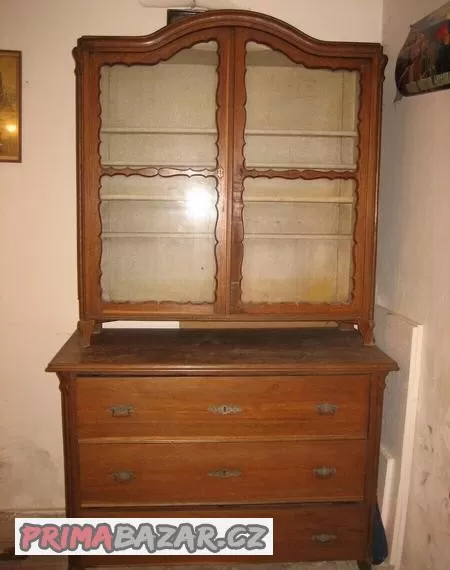 Prodám starobylou skříň skládajících se ze dvou částí, které patří k sobě. Velmi dobrý stav až na chybějící klíč a 2 nohy z horní části, které je nutné přilepit. Rozměry viz foto.