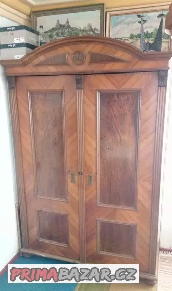 Nabízím starožitnou skříň vyrobená z masivního dřeva a dýhy určená pro renovaci. Rozměry jsou šířka: 49 cm, délka: 133 cm, výška: 199 cm. Doporučuji osobní prohlídku. V případě zájmu prosím pište na e-mail nebo SMS.