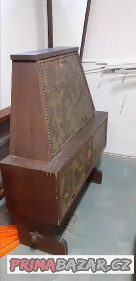 Prodáme starožitný sekretář z masivu (dveře zdobené raženou kůží). Používalo se v pánské pracovně k psaní dopisů.