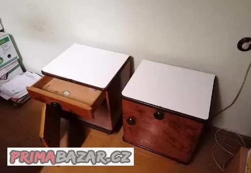 Starožitné stolky myslím že v pěkném stavu oblé rohy na vrchu bílá keramika místy mírně oštipana na 2 místech viditelné při pečlivé kontrole víz foto jinak není vidět viska 53,5 H 40 š46