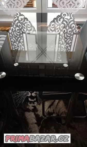 Prodám černý skleněný stůl.Skla jsou v opravdu pěkném stavu,nepoškrábané. Rozměr 120x70. Fotky se mi moc nepovedly ale je to stejný styl jako ten červený. Jediná chyba je na jedné noze,viz foto, ale to už je od novoty, nechtělo se nám to už reklamovat . Pouze osobní odběr.