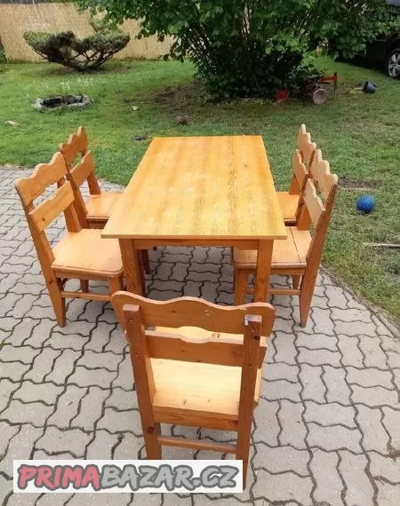 Prodám stůl a 6× židle vhodné na chalupu bytelné.Děláno u truhláře.