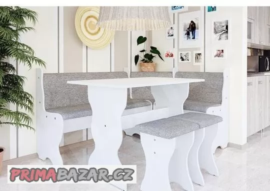 Nový, nepoužívaný kuchyňský sedací kout v záruce (zvolená špatná velikost). Pod lavicí úložný prostor, dva taburety a stůl. Pořízeno za 6600 Kč, prodám za 4900 Kč. Složený, možné i rozložit. Roh volitelná strana. Vlastní odvoz. V okruhu 20 km od Bystřice pod Hostýnem můžu dovézt.