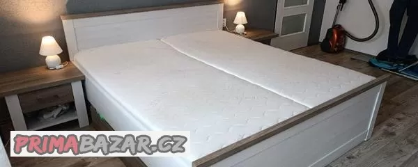 1x postel s nočními stolky 180x200 cm, bělená pinie, k tomu rošt a dvě matrace