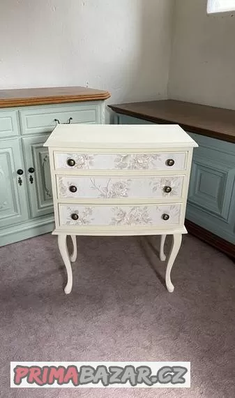 Zrenovovaná komoda, úchytky je možné vyměnit za jiné. Výška 76, šířka 60, hloubka 36cm. Osobní odběr Tmaň u Berouna, případně mohu dovézt za cenu PHM.
