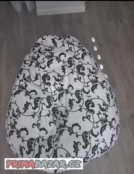 Černobílí vak na sezení. S kuličkovou výplní. Součástí je velký vak a kuličkový polštář. Vše vyfoceno. Velmi málo používaný, Vyčištěný. V moc dobrém stavu. Velikost lze porovnat s postavou dítěte (výška cca 155 cm)