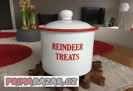Prodám vánoční kovovou dózu, ve skvělém stavu, málo používaná, značka Bloomingville + poštovné Stylová vánoční dóza, která uschová dobroty pro vás, vaše ratolesti, domácí mazlíčky nebo Santovy soby. Dózy jsou kovové s praktickou pokličkou, která ochrání vánoční cukroví i zabalené mikulášské dobroty. Postavte ji kdekoliv v kuchyni a užívejte si malé drobnosti, které vám dělají radost. Vhodné pro kontakt s potravinami, vhodné do myčky na nádobí. Není vhodné do mikrovlnné trouby. Reindeer treats - Ø 18 cm, výška 13 cm.