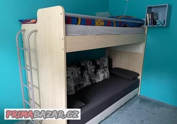 Krásná, praktická postel do dětského pokoje. Lze po ní umístit další postel, stůl, komodu či cokoliv jiného. Vč. kvalitní matrace používané 6 měsíců.