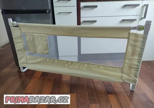 Prodám velkou zábranu na postel. Šířka cca 147 cm, výška min 67 cm. Zábrana je bytelná, snadno složitelná a rozebíratelná (zacvakává se), není potřeba žádného nářadí. Potah snadno sundatelný, pratelný (v ruce).