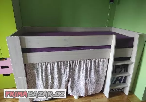 Prodám vyvýšenou postel 90x200 cm s téměř novou matraci a krytem matrace (k dispozici 2 ks krytů matrace). Cena za komplet