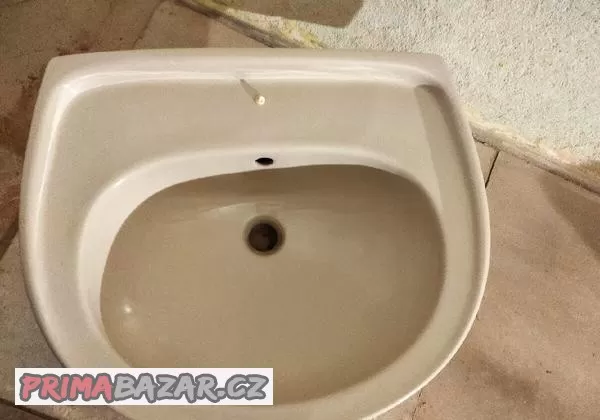 Závěsné umyvadlo krémové barvy bez poškození.