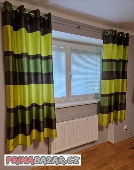 Zelené závěsy/záclony 2 ks s oky pro snadnou instalaci.
