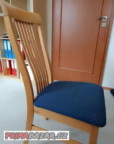 Prodám 6x židle Ton s modrým potahem a dřevěný stůl ( světlé dřevo). Cena dohodou.