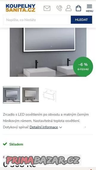 Prodám rcadlo s černým rámem a LED osvětlením o rozměrech 1200 x 600 mm je skvělou volbou pro vaši koupelnu. Nastavitelná teplota barvy světla vám umožňuje přizpůsobit osvětlení podle vašich představ.Je úplně nové, bohužel jsme se spletli v rozměrech a vrácení už nebylo možné. Původní cena je 6308,-