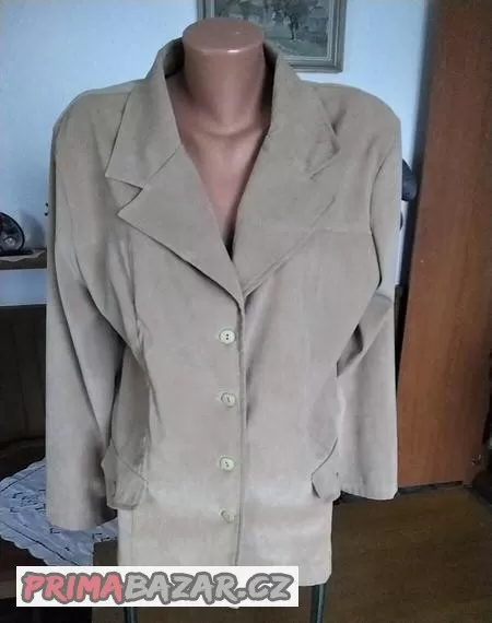 Béžové sako falešné kapsy polyester elasten vzhled samet vel 44/16 přes prsa 106-8 délka 67 cm velmi zachovale