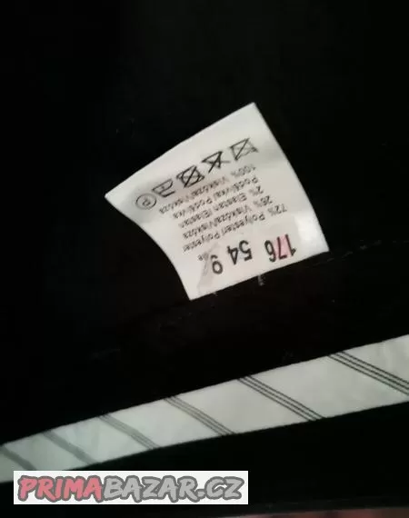 Černý pánský oblek Prostějov, sako vel. 56/170, vesta 52/176, kalhoty 54/176. Nošený synem 2krát do tanečních a na 1 ples, má ještě zašité kapsy a zadní rozparky. PC 6 200,-, vyčištěný.