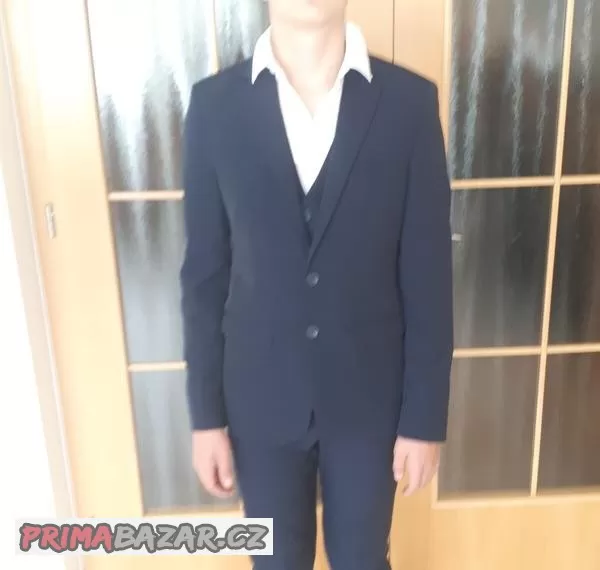 Nenošený chlapecký oblek tmavě modrý s vestičkou z C a A. Při rychlém jednání košile navíc.PC: 3800Kč