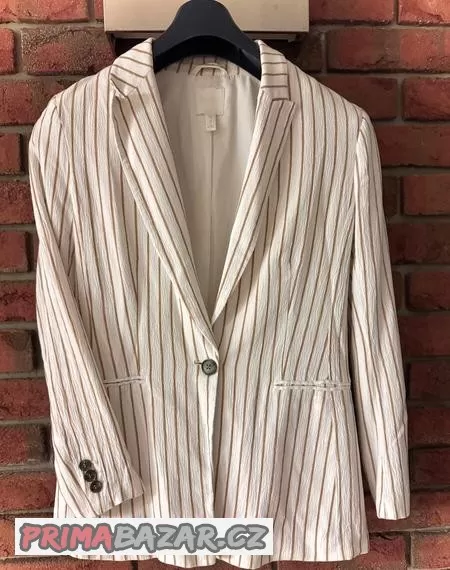 Dámské sako H&M, bílé s hnědým proužkem, vel.38
