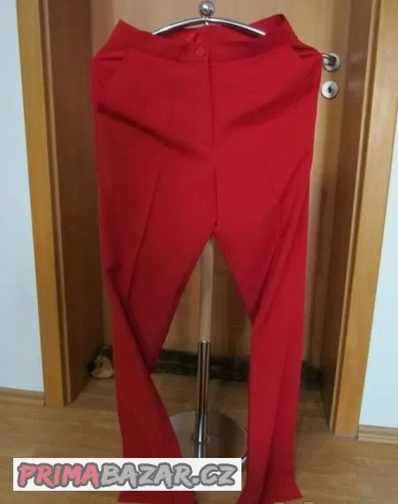 Prodám dámský červený oblek - krátké sako, kalhoty, velikost 38. Kalhoty nenošené, sako nošené minimálně. Cena bez poštovného 400,- Kč.