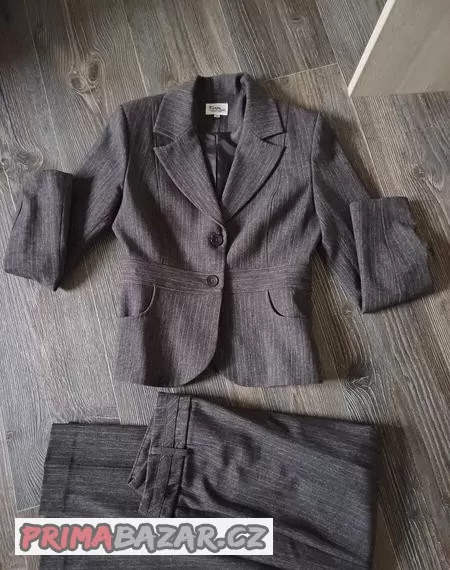 Dámský kalhotový kostým, 2x vzatý, šedý, vel 38 - byl kupovaný v Polsku.