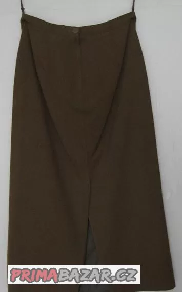 Prodám dámský kostým olivové barvy, italský design. Délka sukně 85 cm, délka saka od límce dolů 82 cm.