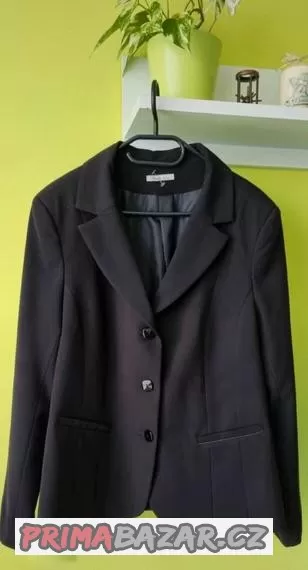 Černé dámské sako Veronika, podšité. Velikost 48, prsa:112cm, pas: 104cm, délka: 65cm, délka rukávu: 64cm. Nádherný, kvalitní materiál 62% polyester, 33% rayon, 5% elastan. Podšívka 100% polyester. PC 6 500Kč