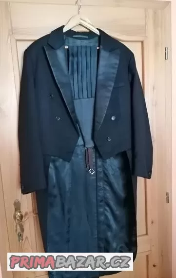 Prodám zachovalý použitý pánský frak (na výšku postavy 175 cm) a pevný obal na oblek. Lze prodat po dohodě i zvlášť.