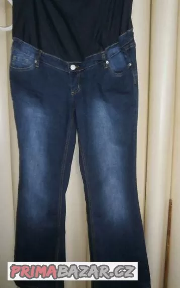 Modré těhotenské rifle vel. 44, délka 103cm, šířka nohavic -25-cm, značka BPC, stav je velmi dobrý