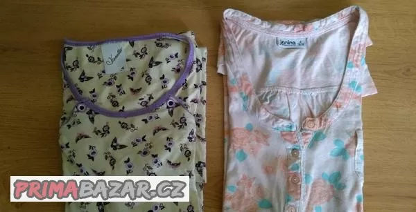 Prodám noční košile s rozepínáním na nošení při kojení. Košile s dlouhým rukávem velikost S má rozepínání po stranách. Košile s krátkým rukávem velikosti 36/38 s rozepínáním ve středu výstřihu.