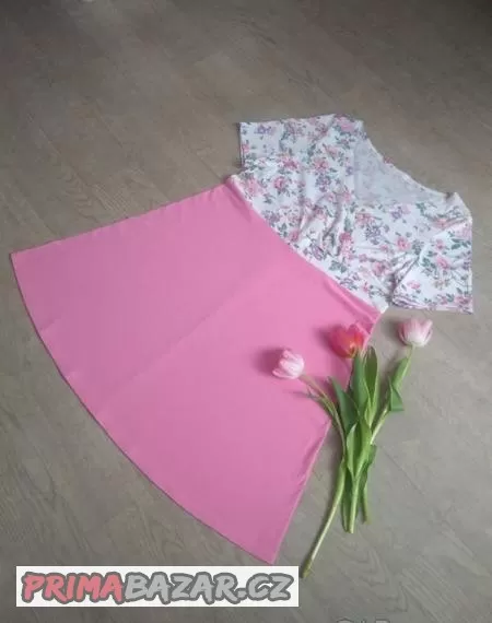 Prodám úpletové šaty, nebo noční košili s krásným květinovým vzorem. Vhodné též jako kojící díky efektnímu překřížení na prsou. Pás pod prsy je ušit ze zdvojené látky, aby dobře seděly. Sukně je čtvrtkolová, takže schová i menší bříško.